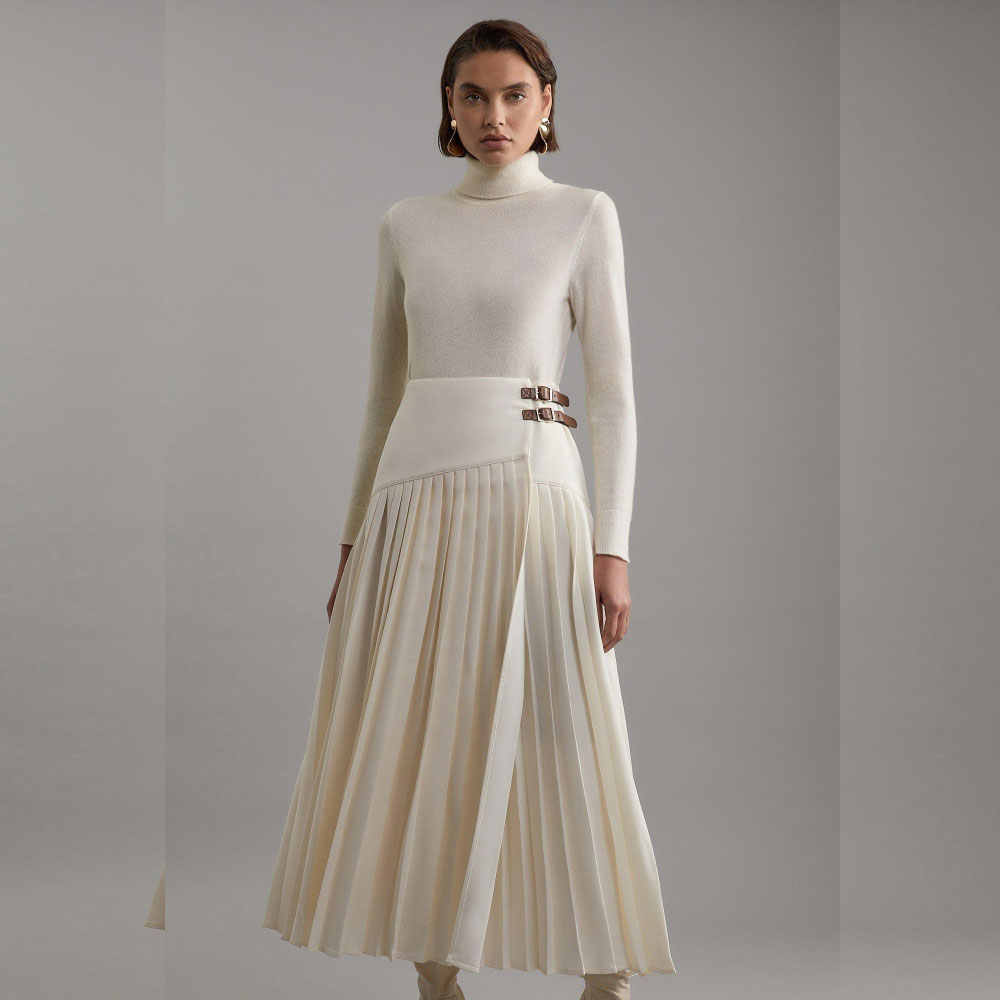 Be the first to review “Tailored Crepe Pleated Buckle Detailed Maxi Skirt”