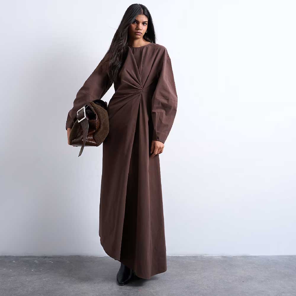 Be the first to review “Topshop knot detail midi dress with asymmetric hem in brown”