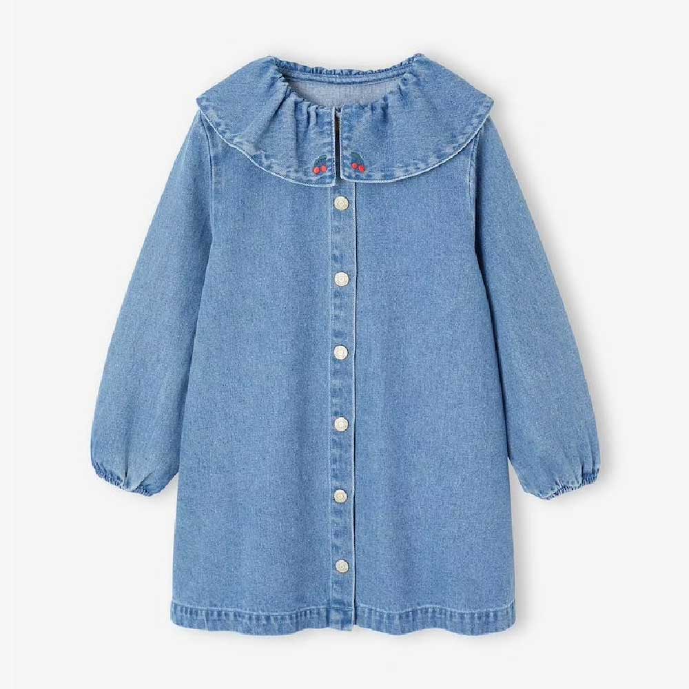 Vertbaudet Girl’s denim dress with frilled collar – medium blue
