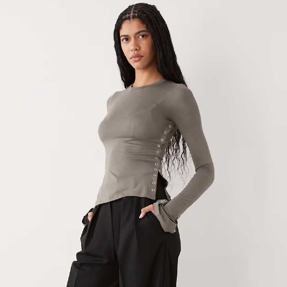 Be the first to review “Weekday long sleeve fitted top with button detailing and asymmetric hem”