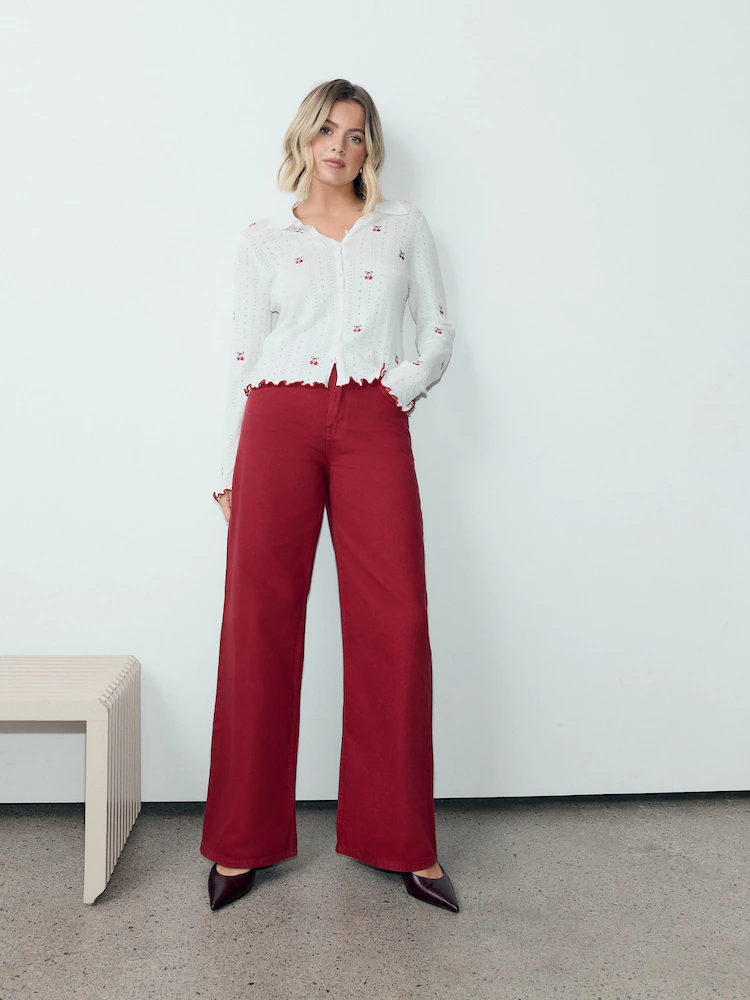 Be the first to review “White Cherry Embroidered Pointelle Long Sleeve Knitted Shirt”